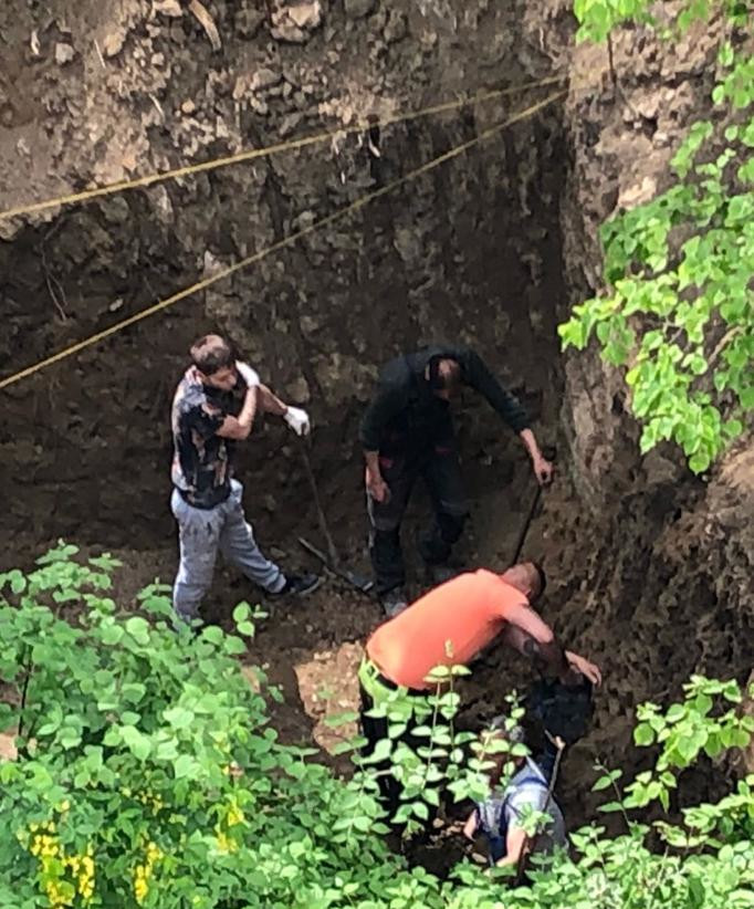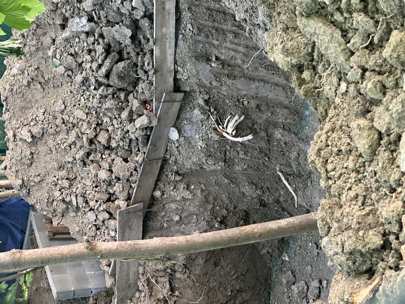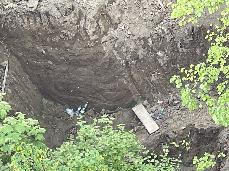 - 12.5.2023 Dnes je výkop tak hluboký, že převzaly práci sbíječky. Máme obavu, aby nešlo o základy našeho domu, terén je tu totiž svažitý a nestabilní. Zároveň je vidět, jak dělníci riskují zavalení ve více jak 3m hluboké jámě.
