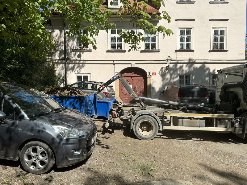 - Zemina se vyklopí v kontejneru, který odveze nákladní auto. Zábor (kontejnery) samozřejmě nebyl nikým povolem. Městská Policie Prahy 5 byla 2x na místě, vyzvala k odstranění a udělila pokutu. Nic se ale nestalo. Pokuta je pár tisíc, žádný problém pro kouzelníky.