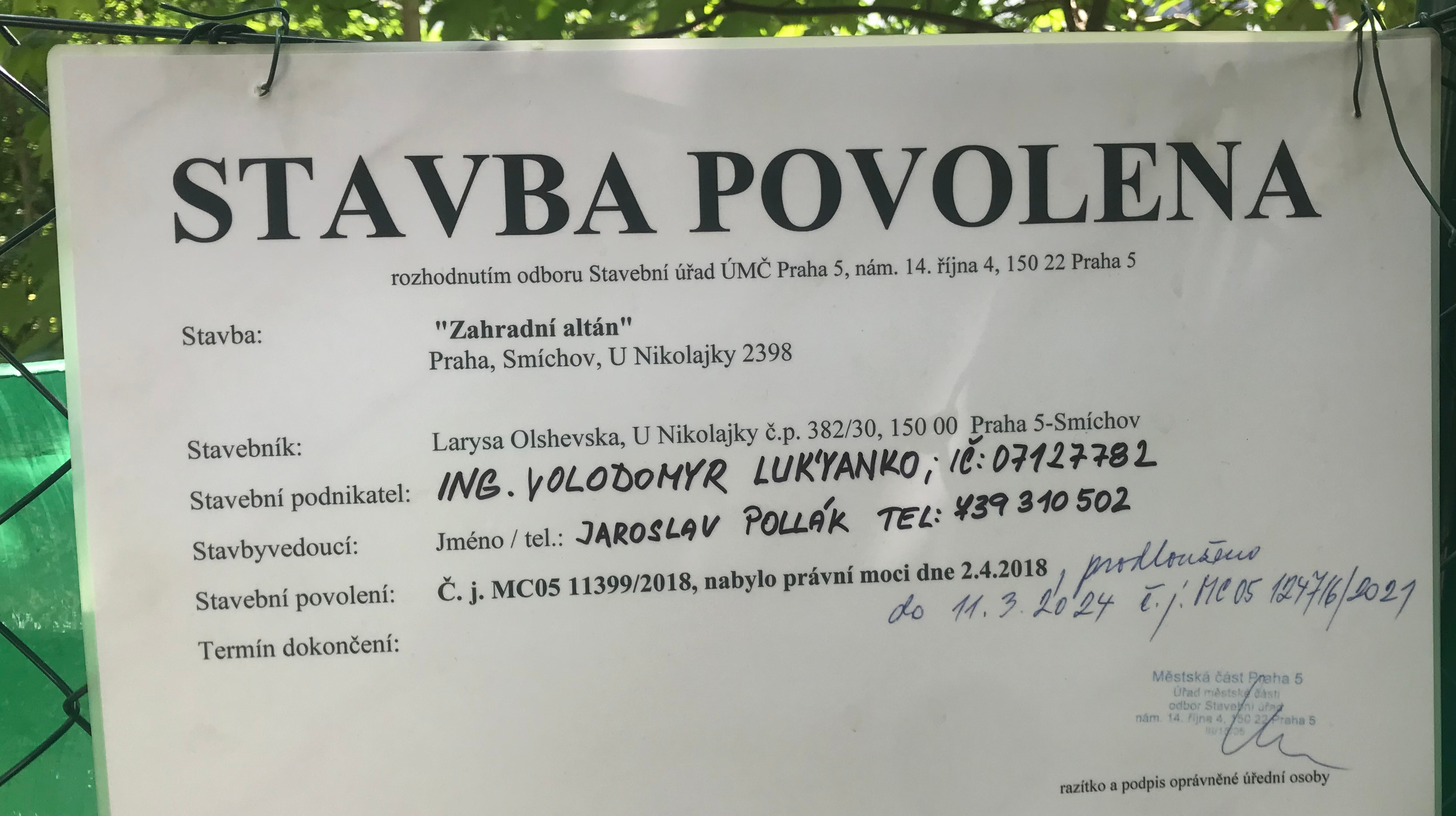 - 19.7.2023 Štítek s povolením se objevil a chybí na něm údaje.